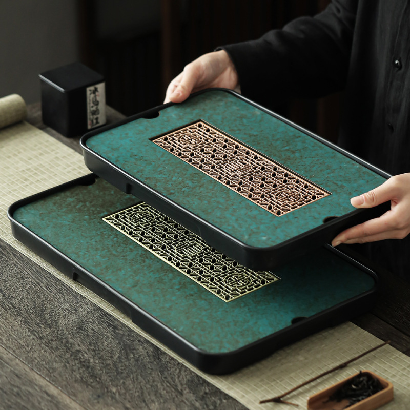 松石绿茶盘家用茶具台托盘沥水轻奢简约陶瓷干泡台小型号排储水式