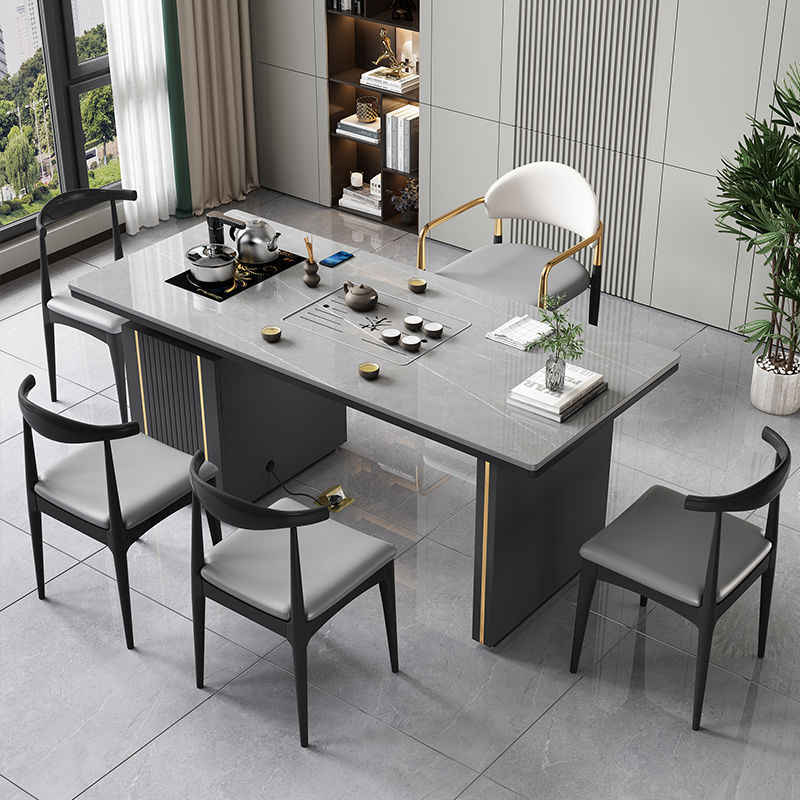 意式轻奢风泡茶桌椅组合套装家用茶盘一体全自动岩板茶桌阳台