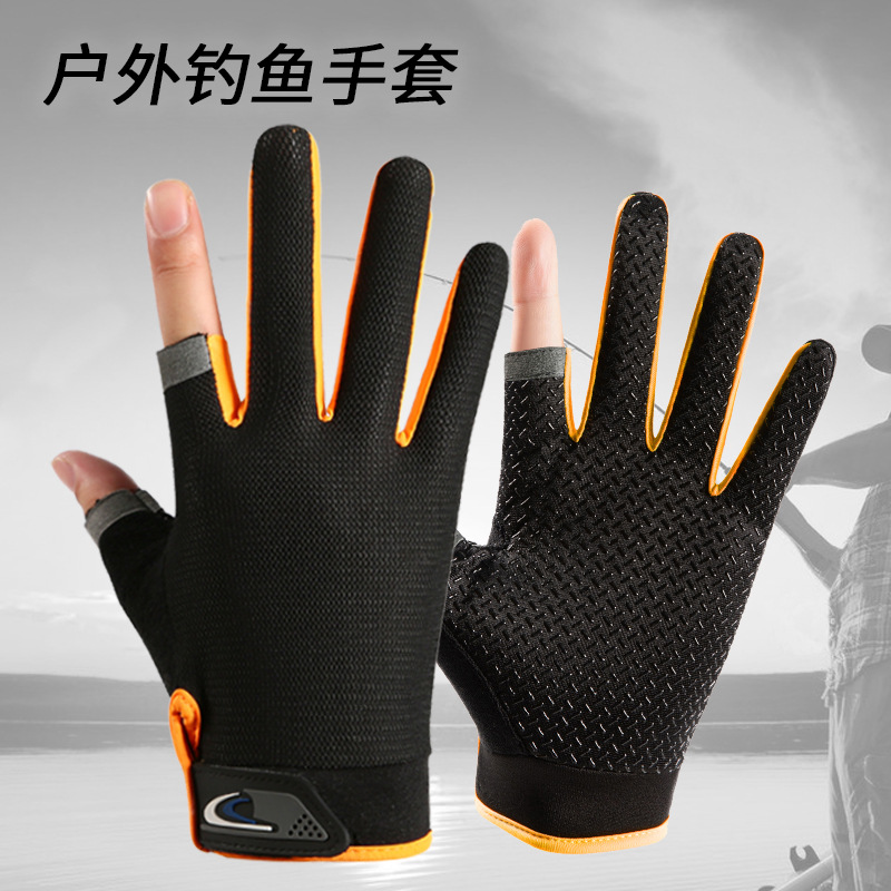 钓鱼手套男夏天薄款防晒露指透气弹力开车漏二指路亚外卖半指骑行