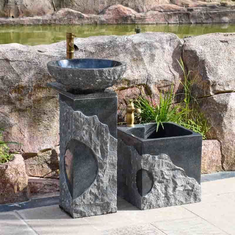 洗手台盆一体落地式石材洗脸盆艺术阳台复古户外石头立柱盆洗手盆
