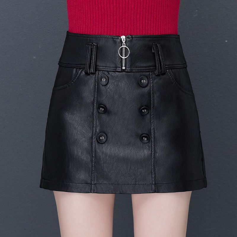 皮裙裤女2023新款外穿高腰字半身裙显瘦包臀短裙黑色短裤女秋冬