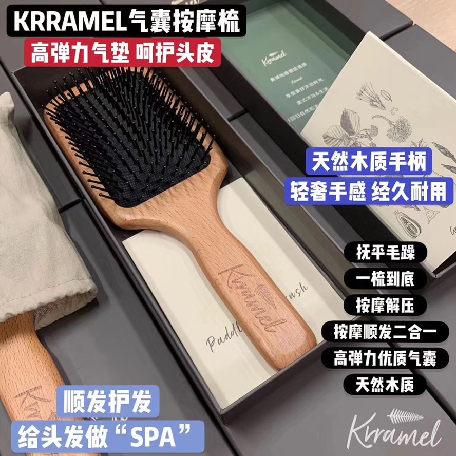 美国棵沐krramel气囊梳棵沐气垫按摩梳榉木制作新款二代升级版