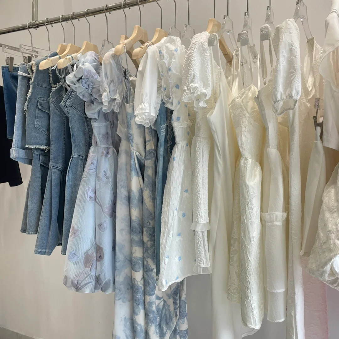 森马夏季新款甜美公主风泡泡袖连衣裙十三行品牌女装裙子批发货源