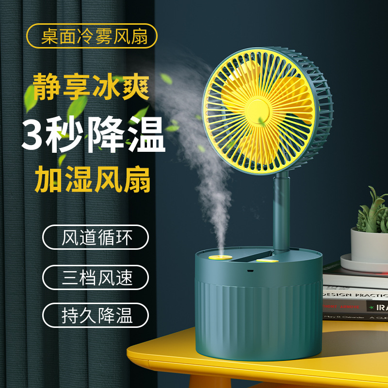 USB伸缩折叠加湿风扇喷雾空气循环扇静音台式宿舍办公家用电风扇