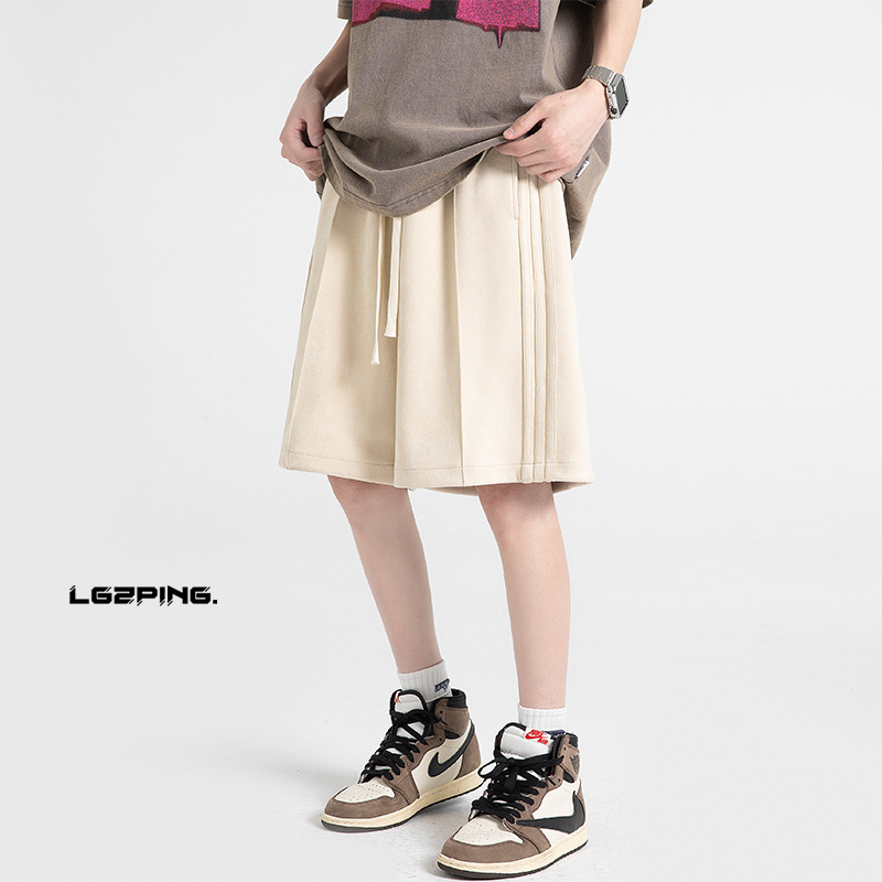 美式复古短裤男夏季设计感麂皮绒运动裤子宽松大码潮牌休闲五分裤