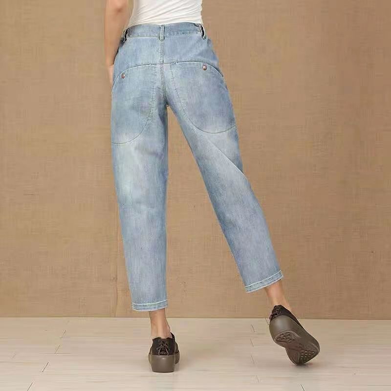 高腰七分薄款牛仔裤女2023夏季新款宽松显瘦矮个子老爹裤子八分裤