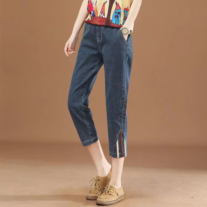 九分哈伦裤夏季薄款松紧腰宽松牛仔裤女2023新款高腰显瘦大码百搭