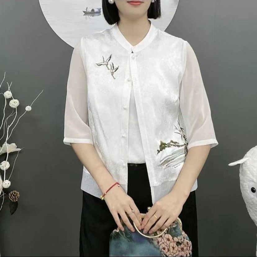 真丝刺绣上衣女春夏新款设计感中国风桑蚕丝小开衫复古短外套