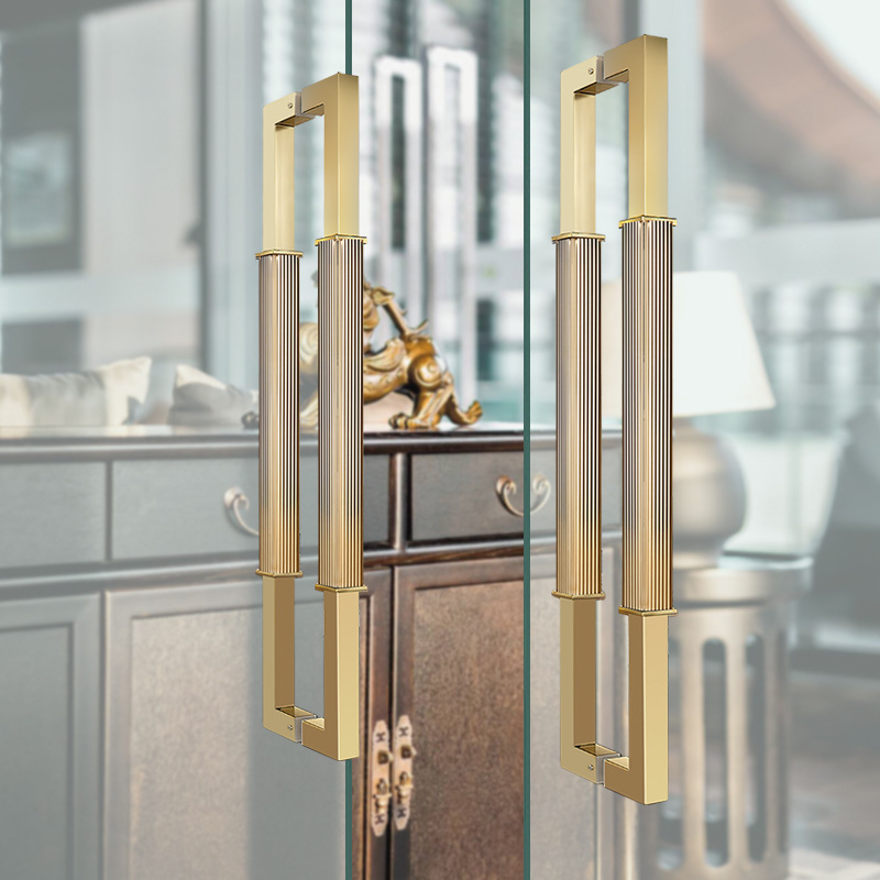 加厚不锈钢玻璃门拉手黑钛玫瑰金木门扶手方管轻奢推拉大门长把手