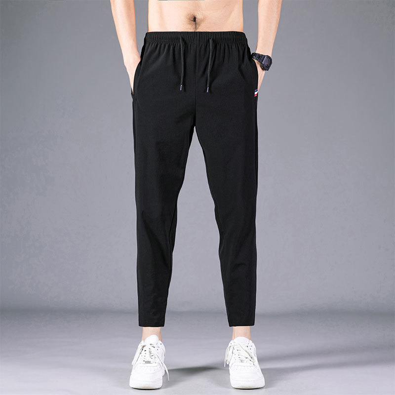 夏季薄款冰丝运动九分裤男士潮牌速干透气百搭宽松纯色ins休闲裤
