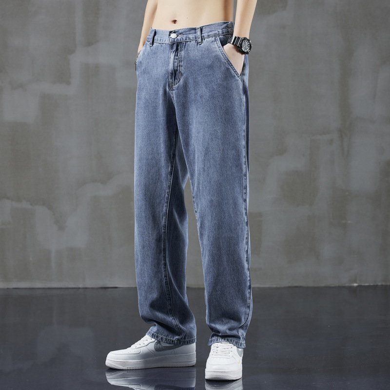 天丝薄款阔腿裤男宽松直筒裤莱赛尔冰丝凉感直筒裤百搭牛仔裤子潮