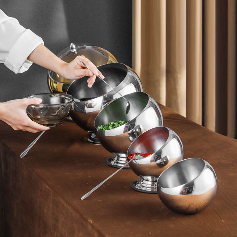 调料缸不锈钢创意斜口碗带盖球形火锅调味碗自助餐罐商用小料碗
