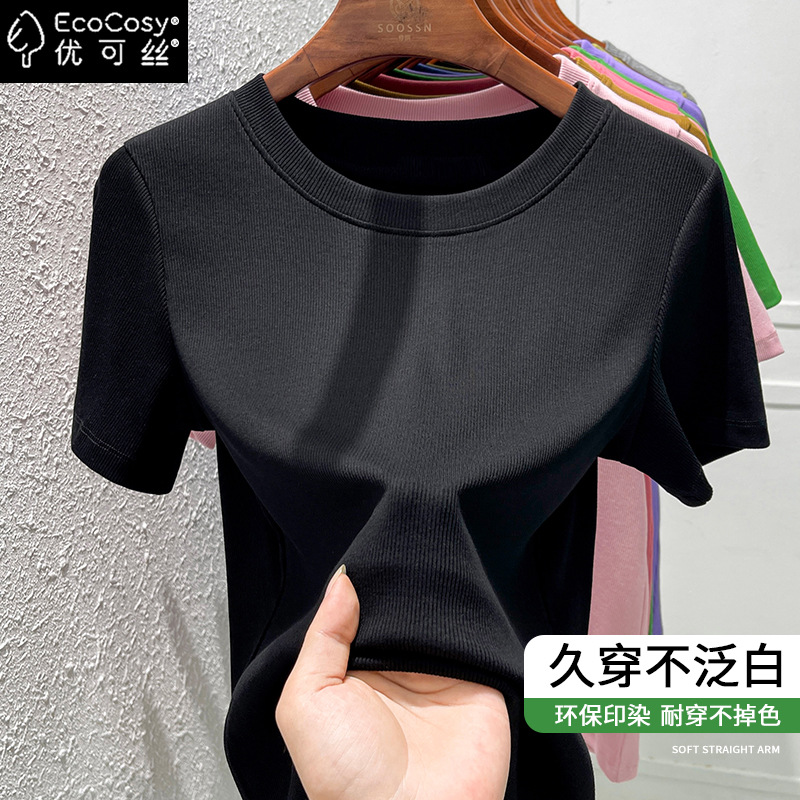 优可丝短袖T恤女圆领打底衫2023春夏新款基础款百搭正肩1688上衣