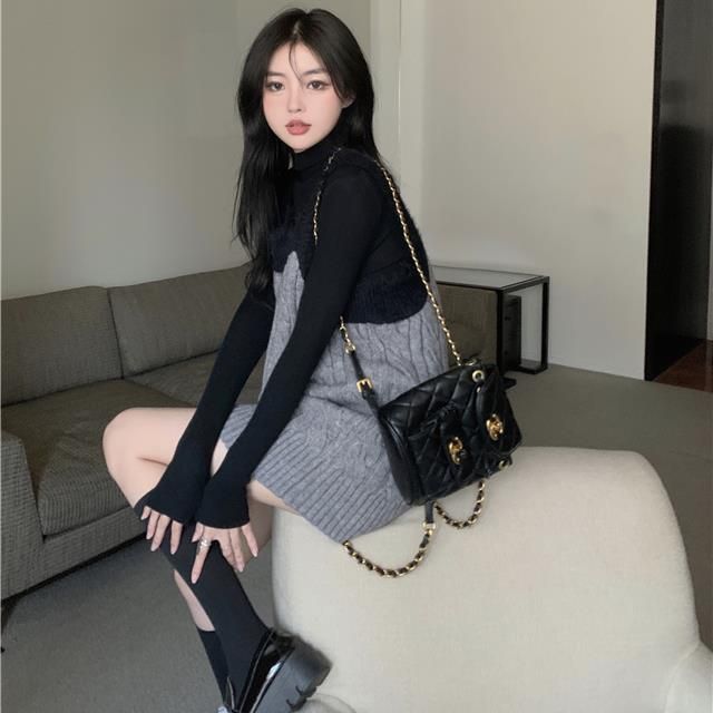 单件2022冬季甜美复古麻花针织吊带裙女潮外穿