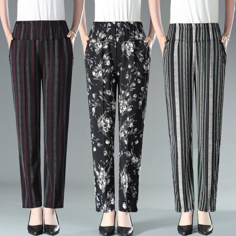 夏款中老年女裤高腰弹力妈妈花裤子大码中年女裤老年人花裤子女夏