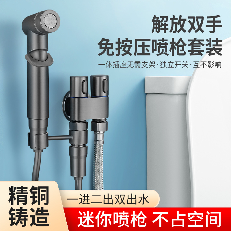 灰色迷你马桶伴侣喷全铜一进二出多功能角阀高压冲洗器省空间