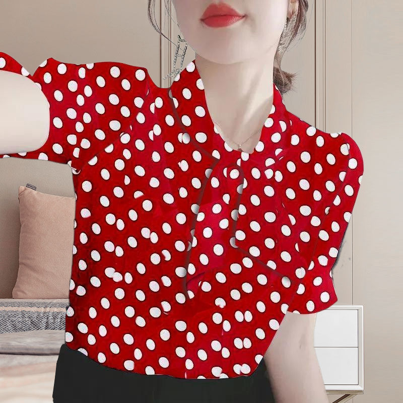 2023夏季新款时尚气质波点条纹雪纺印花衬衫上衣女