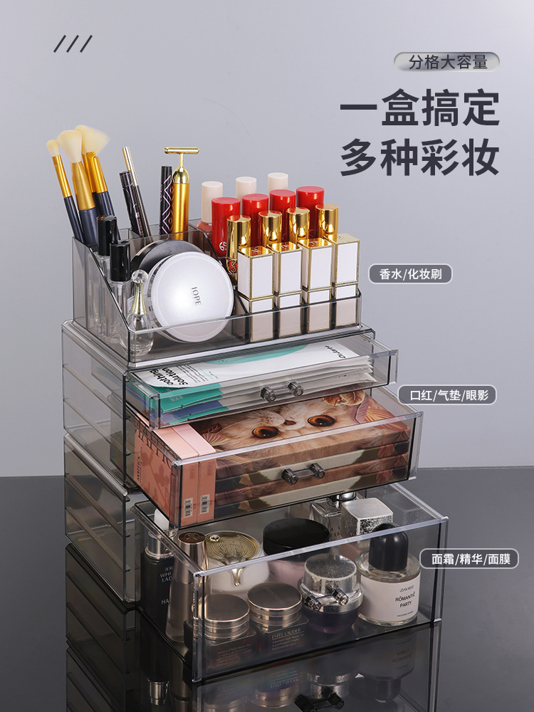 分格化妆品收纳盒子抽屉式亚克力大容量桌面防尘柜口红置物架好物