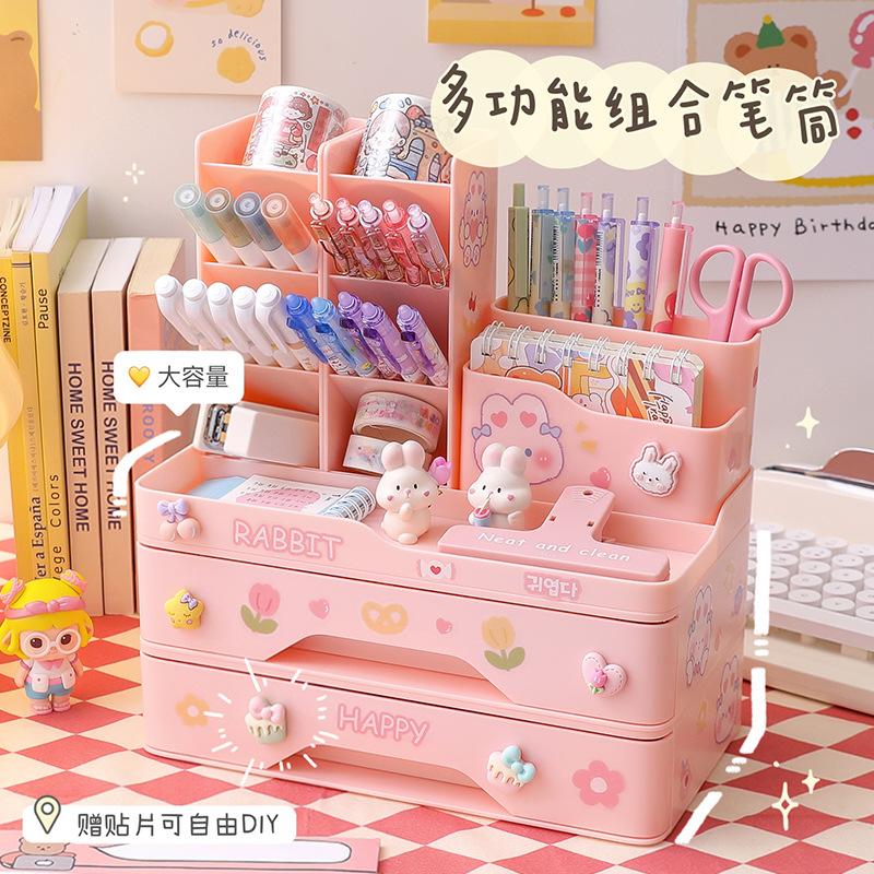斜插式笔筒收纳盒大容量创意可爱学生办公室桌面儿童女孩文具笔架