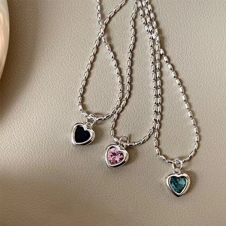 彩色爱心锆石项链女ins甜酷辣妹设计锁骨链高级感小众嘻哈配饰潮
