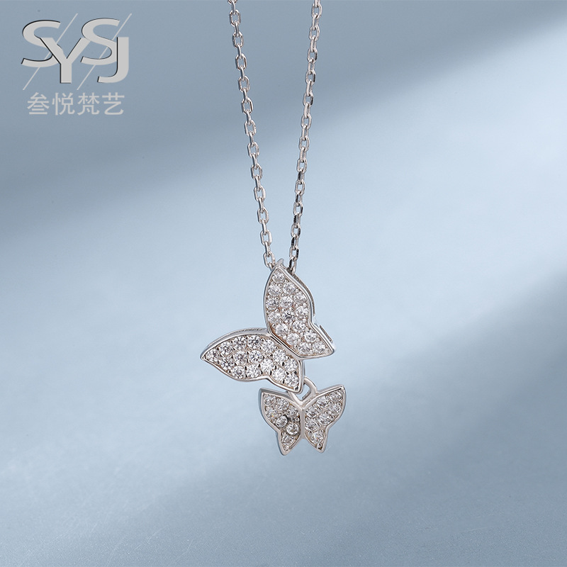 叁悦饰界s925银梦幻蝴蝶项链女纯银小众设计森系吊坠简约锁骨链