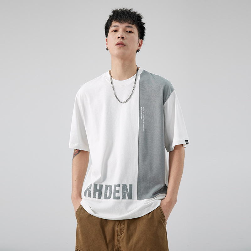美式街头撞色短袖T恤男宽松休闲纯棉印花半袖夏季ins潮牌圆领体恤