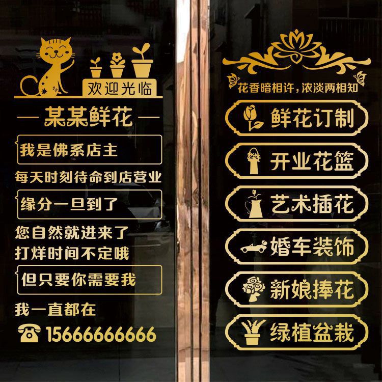 创意鲜花店玻璃门贴纸 个性婚庆公司影楼项目广告字橱窗装饰墙贴