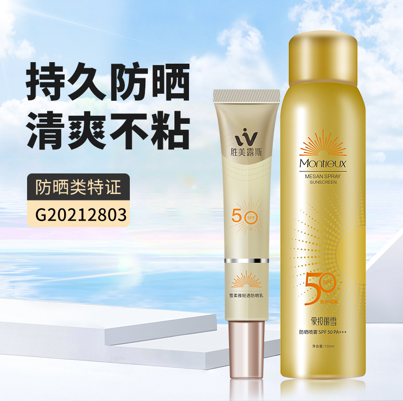 蒙投丽雪SPF50高倍隔离防晒霜 防水防汗防晒喷雾防晒乳护肤品批发