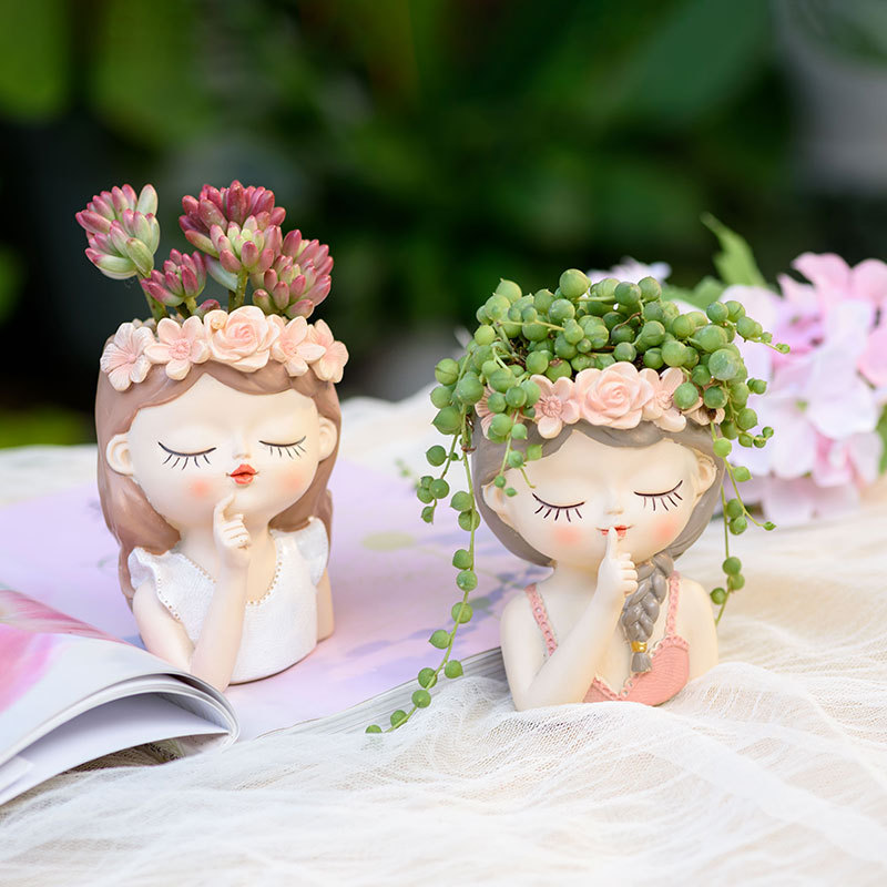 花盆栽多肉创意卡通小可爱女孩盆栽桌面小花盆迷你花瓶儿童节礼物