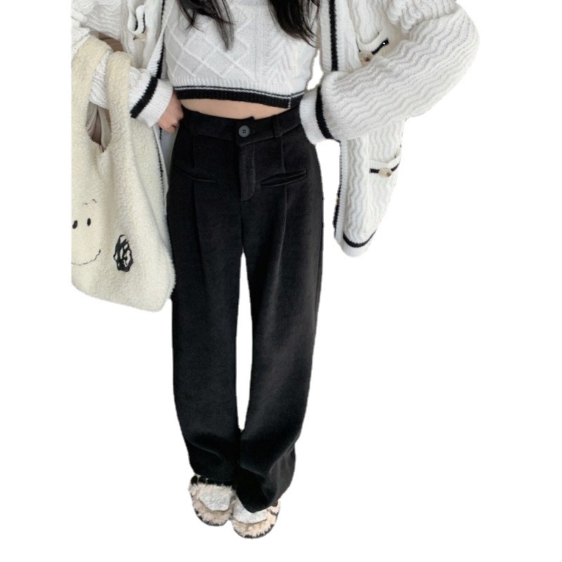 松紧腰牛仔长裤女加绒加厚休闲裤子女秋冬季高腰显瘦垂感阔腿潮
