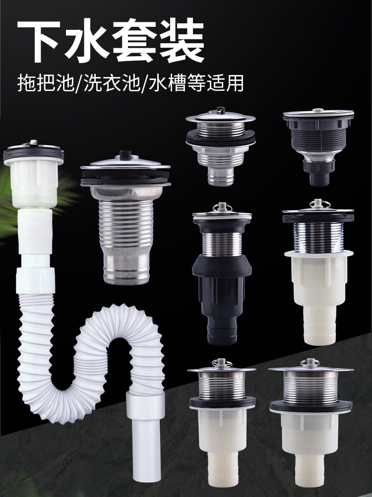 拖把池下水器老式瓷盆洗衣池排水管大理石盆水泥池通用型套装配件