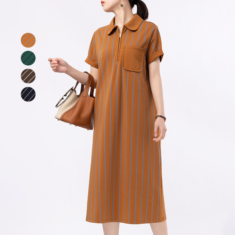 素町23夏新设计款条纹连衣裙 通勤宽松休闲百搭衬衫领连衣裙