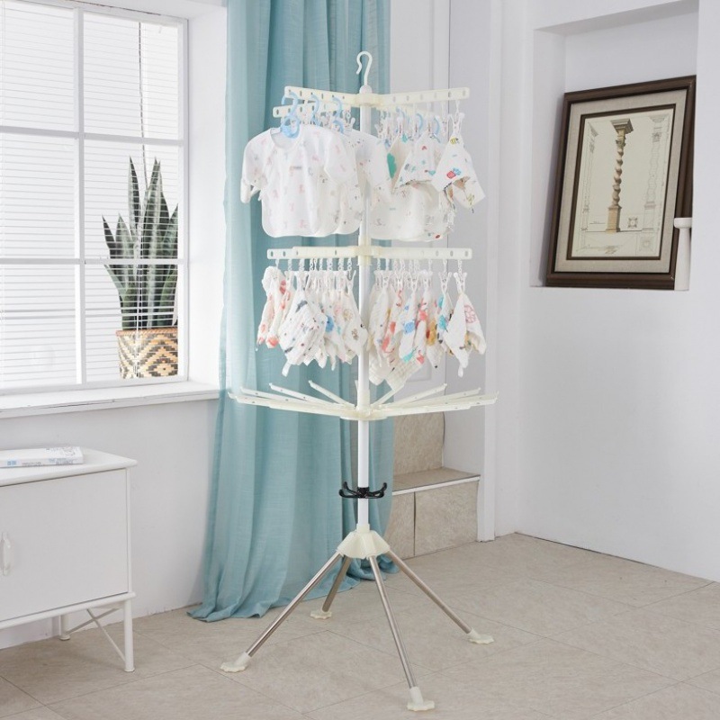 落地晾衣架折叠婴儿家用阳台晒衣架新生儿童衣架宝宝尿布架亚马逊