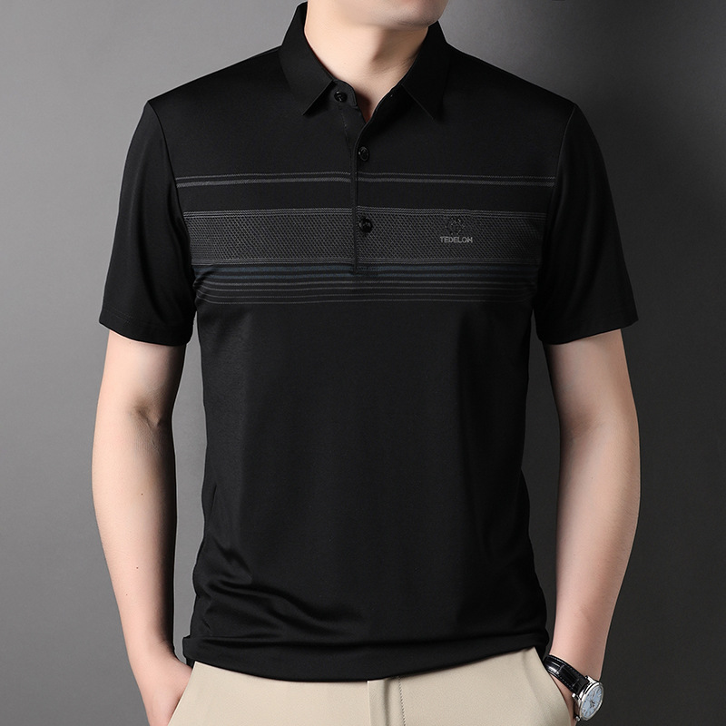 夏季新款中年男士短袖t恤衫冰丝休闲翻领polo衫透气百搭男装上衣