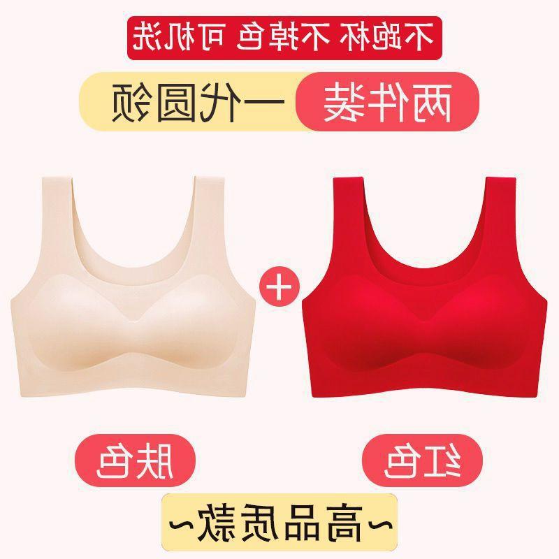 两件装本命年大红色兔年内衣女大码文胸无钢圈无痕小胸结婚胸罩冬