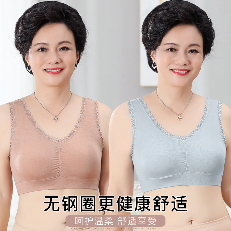 中老年妈妈莫代尔内衣女加大码背心式运动文胸高弹无钢圈聚拢胸罩