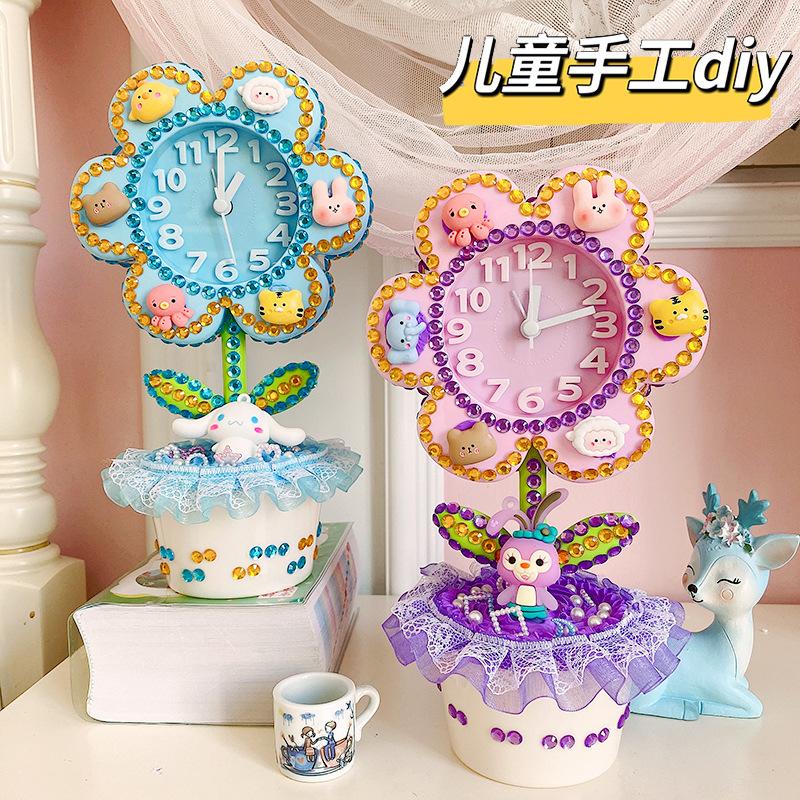 批发奶油胶diy手工制作材料包闹钟钻石粘贴女童益智玩具孩子礼物