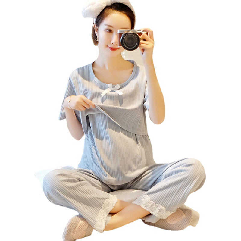睡衣三件套哺乳衣棉月子服春秋孕妇产后哺乳衣孕妇家居服喂奶衣
