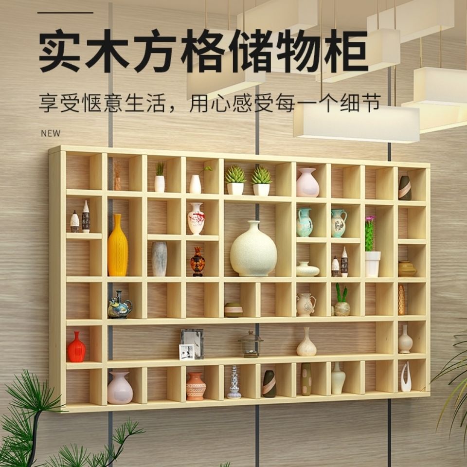 墙上置物架实木格子架茶壶架展示架茶杯架收纳架书架饰品架