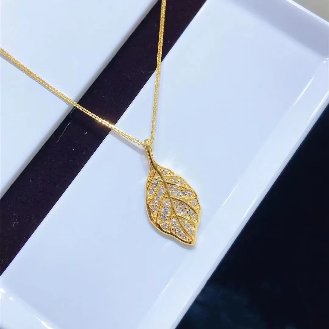 网红爆款金枝玉叶叶子项链一叶暴富轻奢黄金色锁骨链跨境热卖饰品