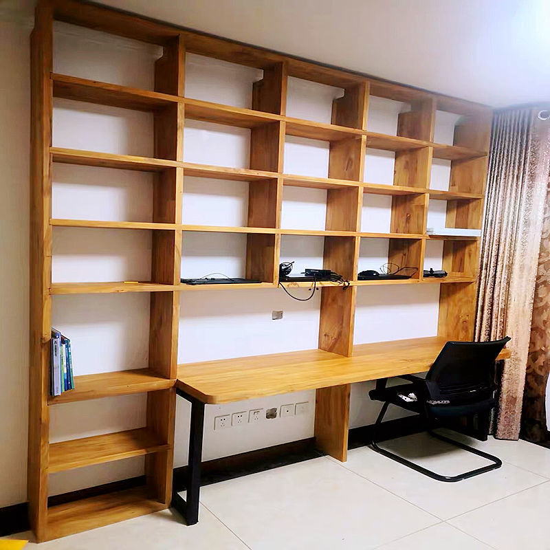 老榆木书架实木书柜隔断置物架墙上格子架落地满墙柜子多层格