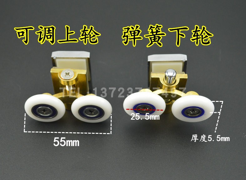 全铜圆弧淋浴房玻璃门轮子浴室移门吊滑轮摇摆转动双轮上下轮滚轮