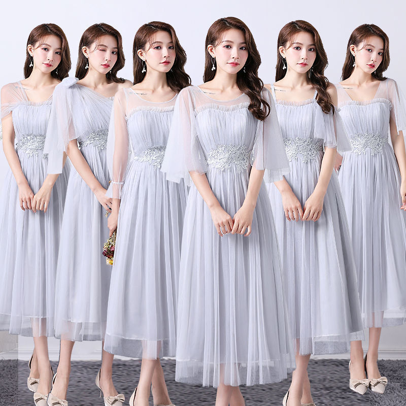 伴娘服平时可穿中长款2022新款秋冬简约大气姐妹团毕业合唱礼服裙
