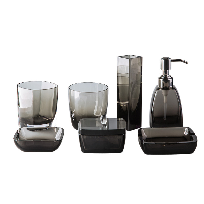 黑水晶玻璃七件套五星级酒店卫浴洗漱套装轻奢洗手液瓶漱口杯