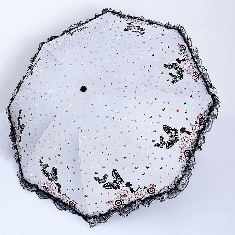 蕾丝花边遮阳伞时尚小巧折叠晴雨两用太阳伞黑胶户外女式超轻雨伞