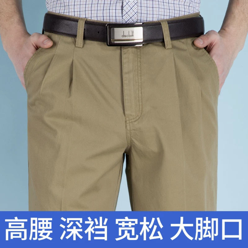 UNMUN双褶棉春夏季男款裤子中年人男装中老年高腰深档宽松直筒裤
