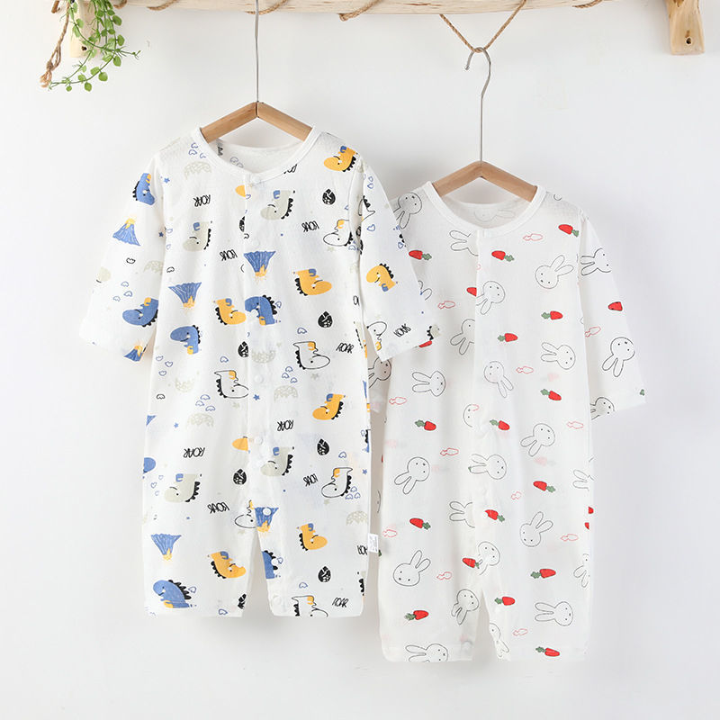 婴儿连体衣夏季超薄款长袖空调服宝宝哈衣新生儿透气睡衣爬服