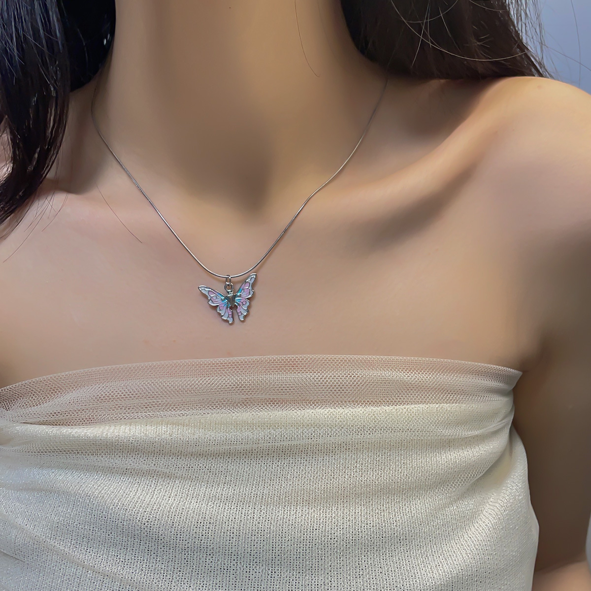 小众设计幻彩蝴蝶项链女简约精致百搭通勤高级感网红气质锁骨链潮