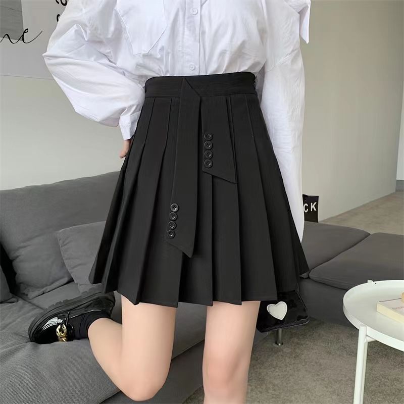 黑色百褶半身裙女秋冬新款高腰显瘦a字裙短裙韩版学院风半身裙女