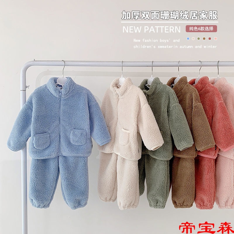 儿童套装秋冬款男女童冬装加绒加厚保暖中小童洋气家居服俩件套潮